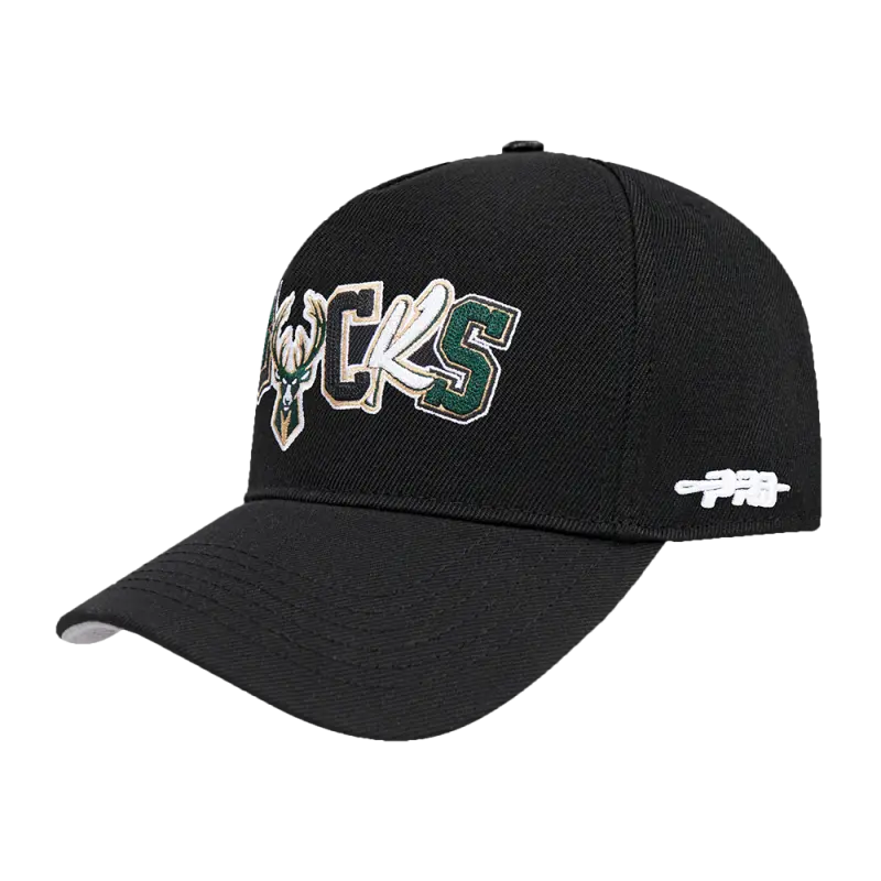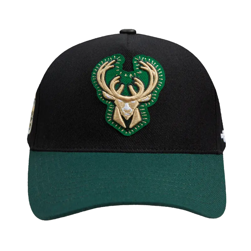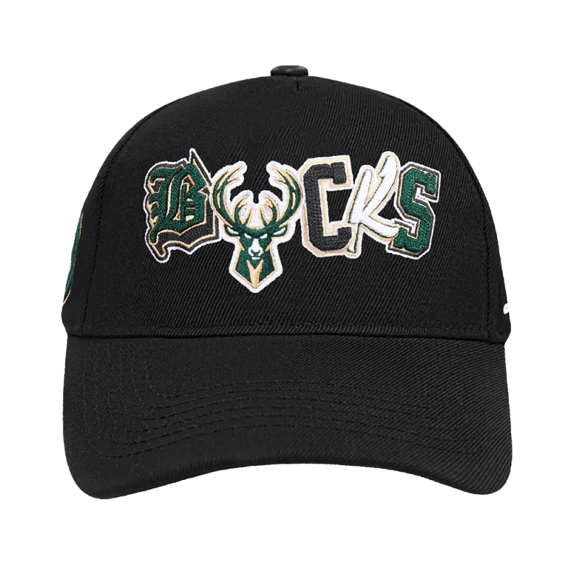 NBA MILWAUKEE BUCKS DIY PICK STITCH PINCH FRONT SNAPBACK HAT (BLACK)