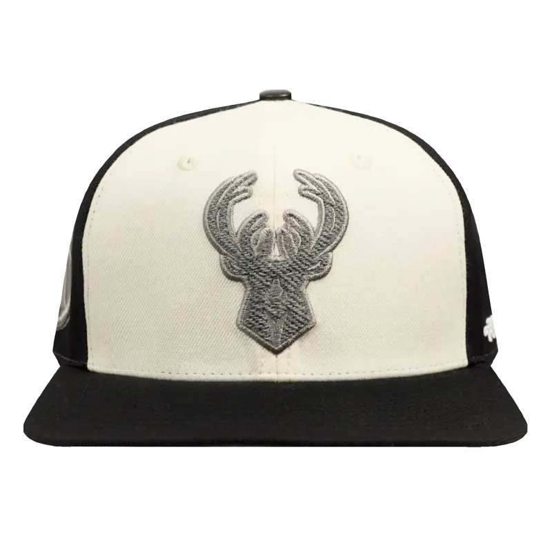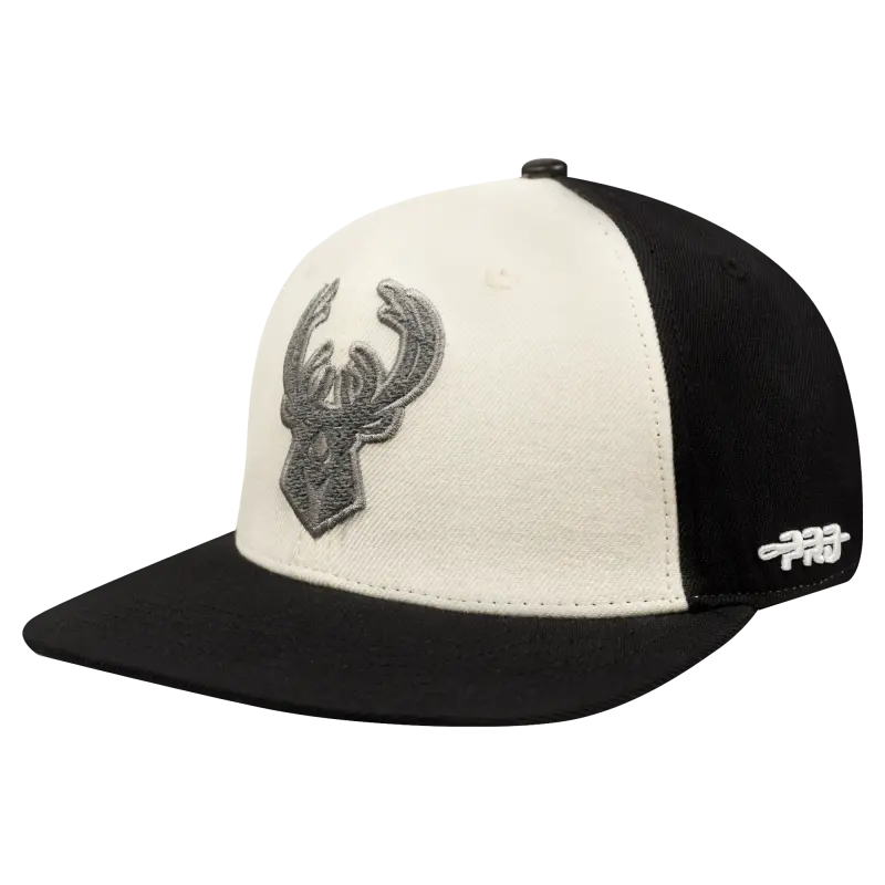 NBA MILWAUKEE BUCKS REVERSE FRENCH TERRY PINCH FRONT SNAPBACK HAT (EGGSHELL\/ BLACK)