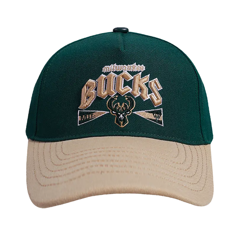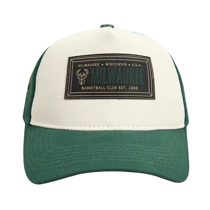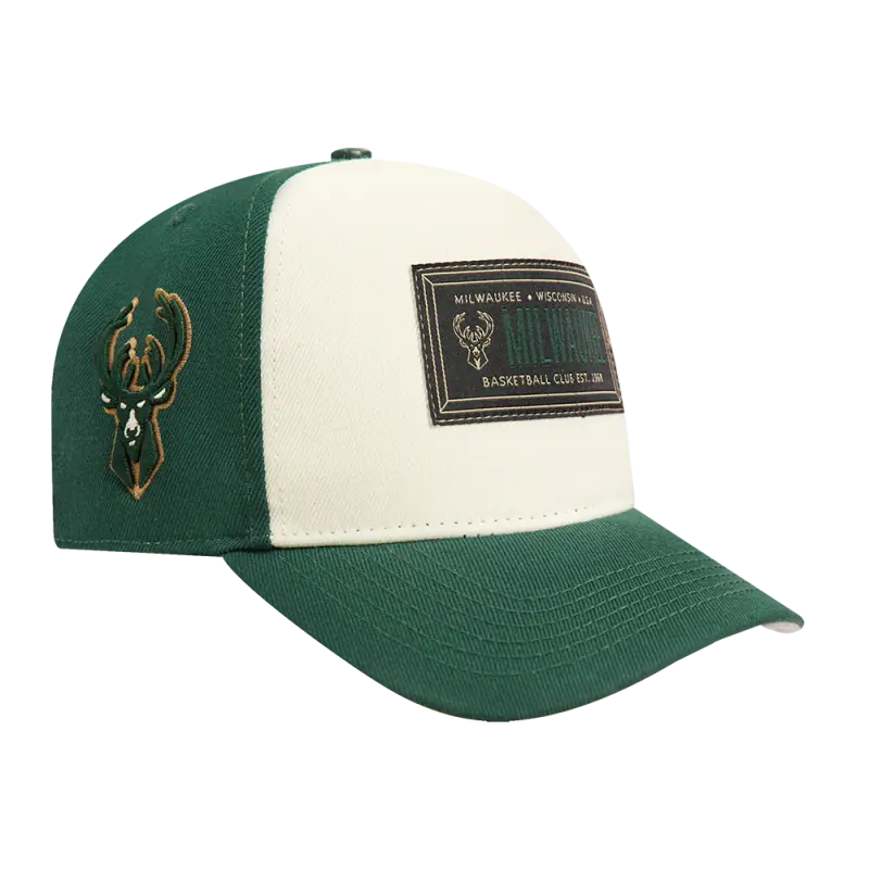 NBA MILWAUKEE BUCKS CLUB MEMBER BADGE PINCH FRONT SNAPBACK HAT (EGGSHELL\/ FOREST GREEN)