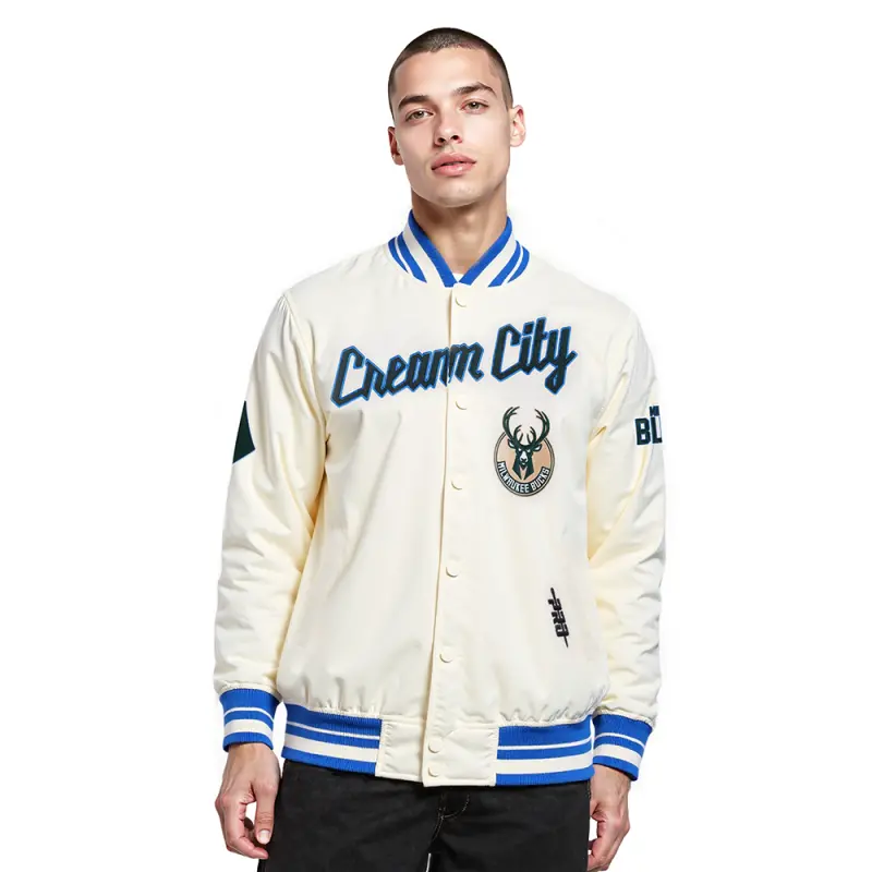 NBA MILWAUKEE BUCKS CITY EDITION 25-26 MEN’S RIB WOOL VARSITY JACKET (EGGSHELL\/ROYAL BLUE)