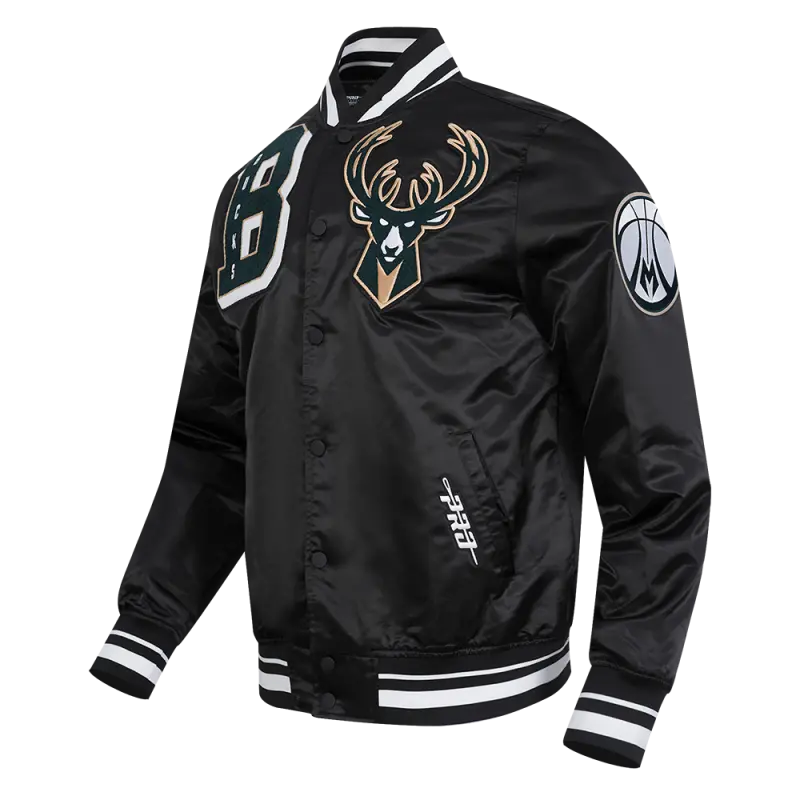 NBA MILWAUKEE BUCKS MASHUP MEN’S RIB SATIN JACKET (BLACK)
