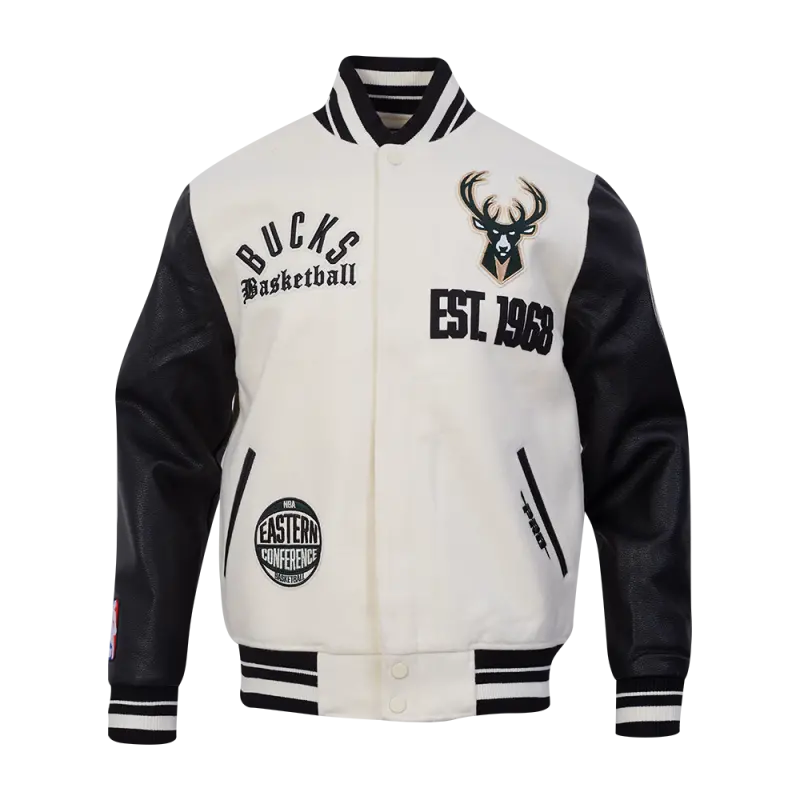 NBA MILWAUKEE BUCKS MODERN ORIGINALS MEN’S RIB WOOL VARSITY JACKET (EGGSHELL\/ BLACK)