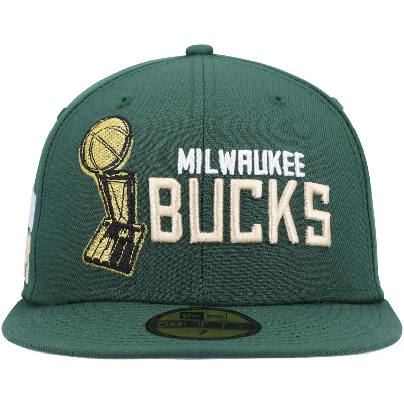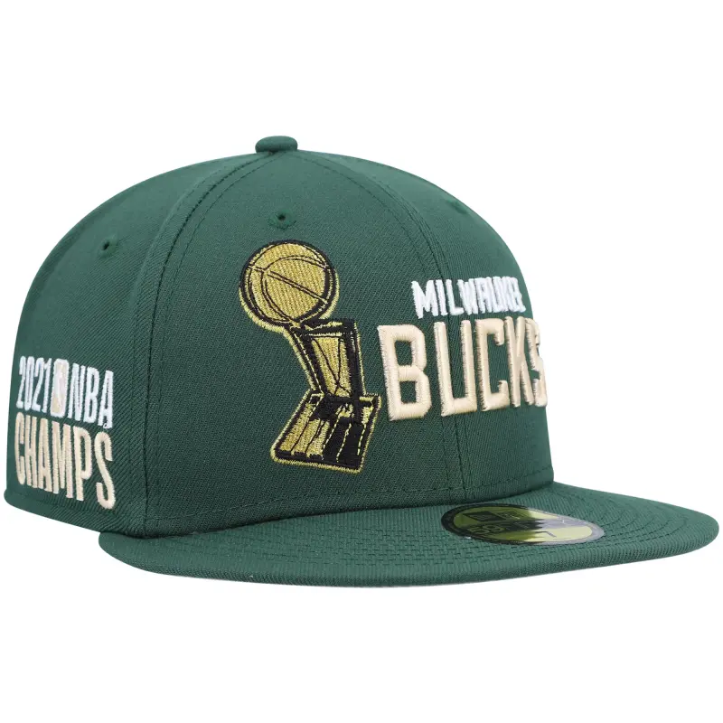 - Grab the perfect finishing touch on game day with this Champs Trophy 59FIFTY hat from New Era. Designed with distinctive Milwaukee Bucks details embroidered on the front panel, this fitted cap adds a pop of style to any outfit. The structured build ensures a timeless finish, helping you look fresh as you proudly rep the Milwaukee Bucks.