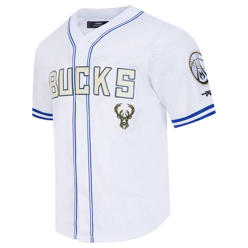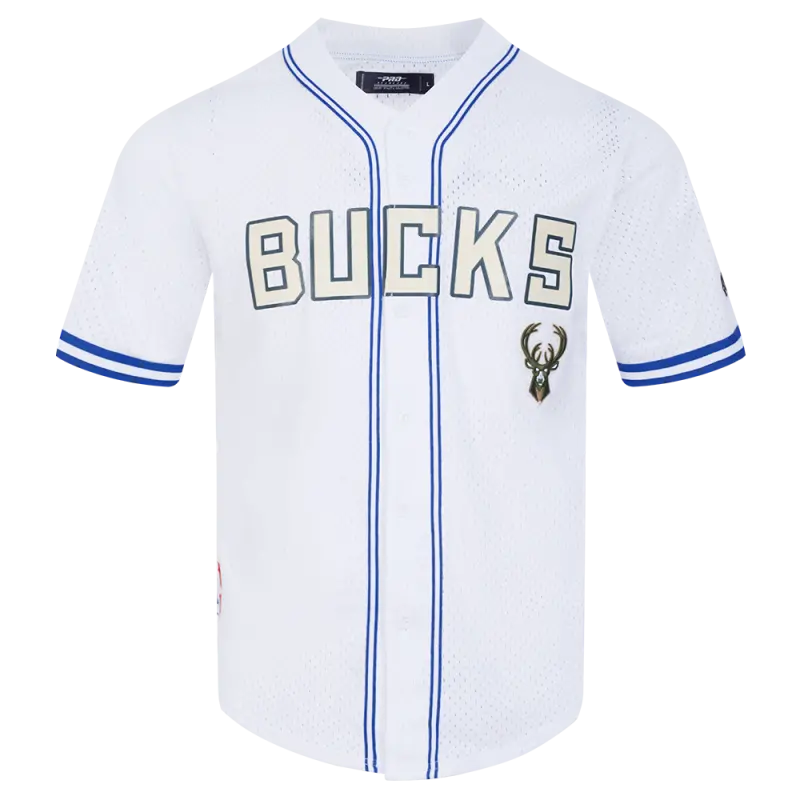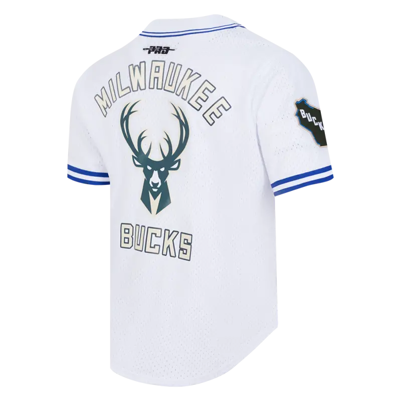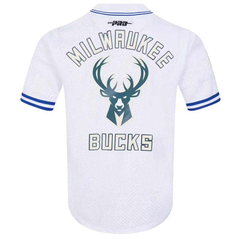 NBA MILWAUKEE BUCKS CITY EDITION 24-25 MEN’S MESH BUTTON DOWN SHIRT (WHITE\/ROYAL BLUE)
