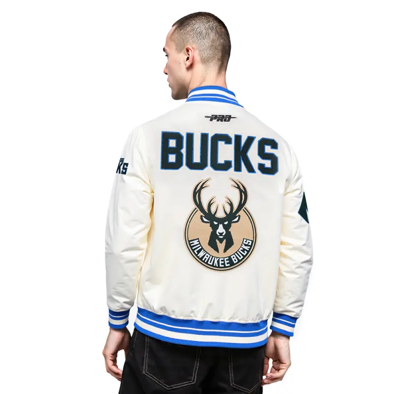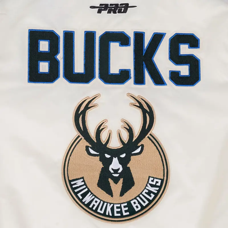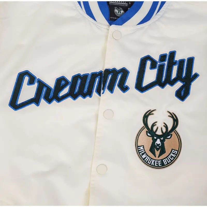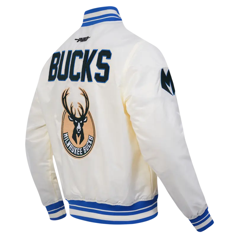 NBA MILWAUKEE BUCKS CITY EDITION 25-26 MEN’S PRO SATIN YD RIB JACKET (EGGSHELL\/ ROYAL BLUE)
