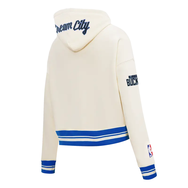 NBA MILWAUKEE BUCKS CITY EDITION 25-26 WOMEN’S RIB FLC CROPPED PO HOODIE (EGGSHELL\/ ROYAL BLUE)