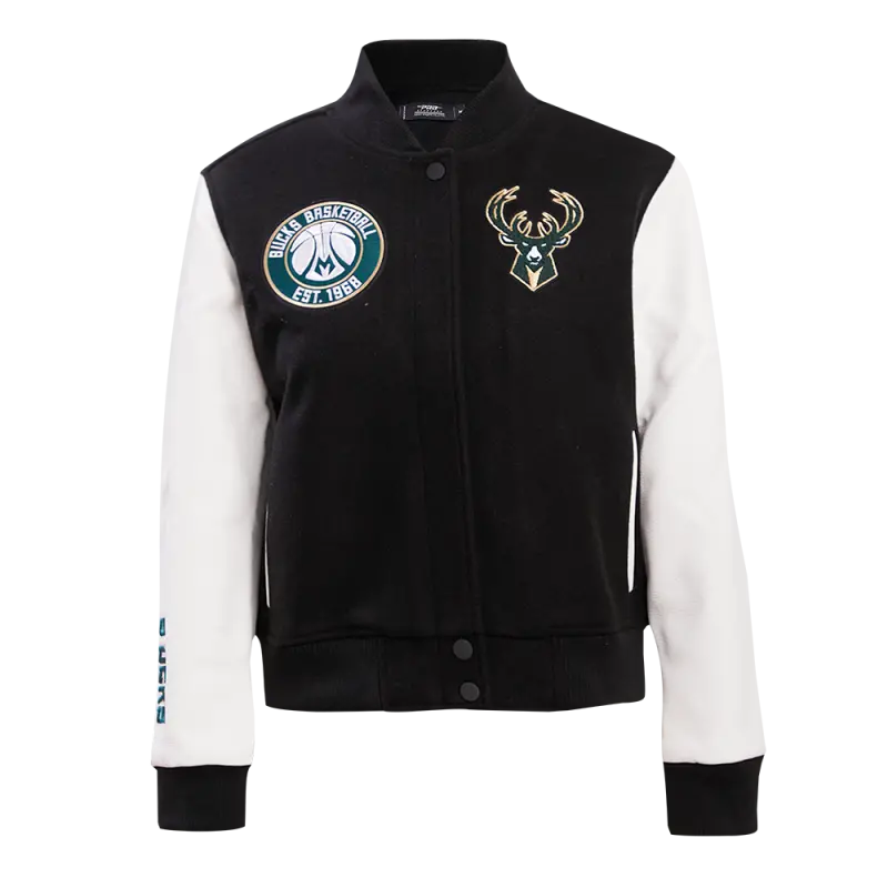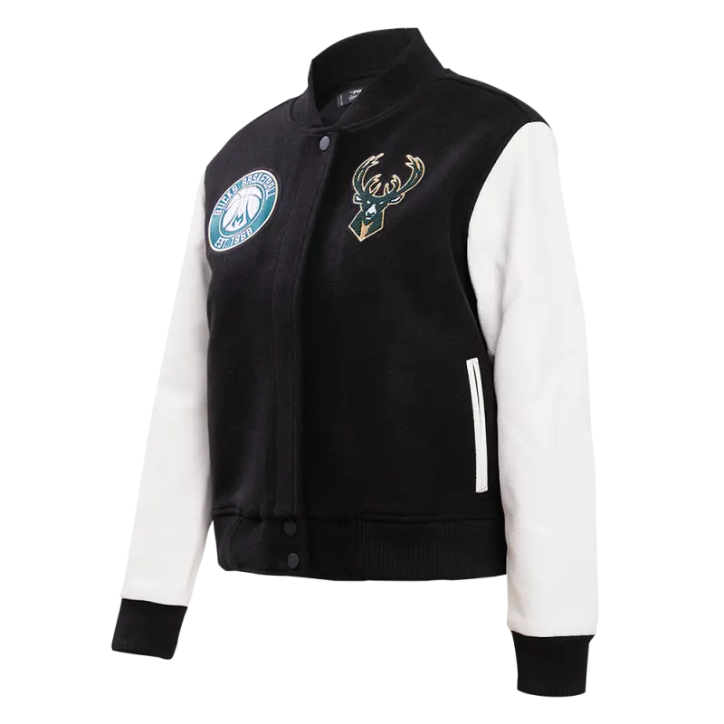 NBA MILWAUKEE BUCKS CLASSIC WOOL WOMEN’S VARSITY JACKET (BLACK\/WHITE)