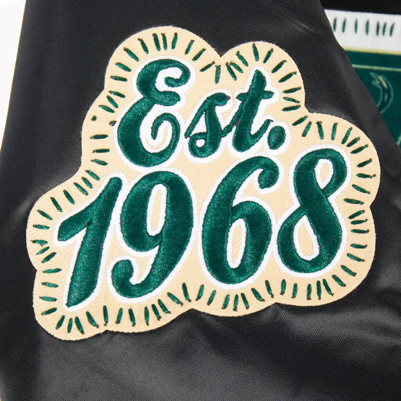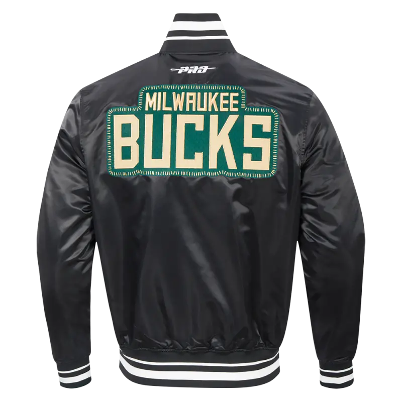 NBA MILWAUKEE BUCKS DIY PICK STITCH MEN’S RIB SATIN JACKET (BLACK)