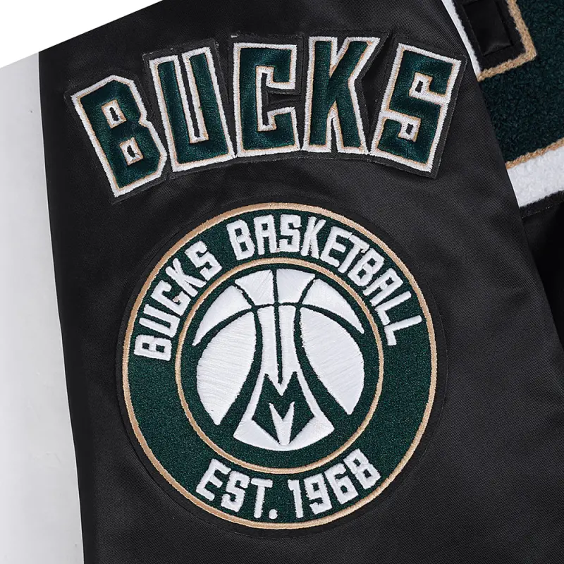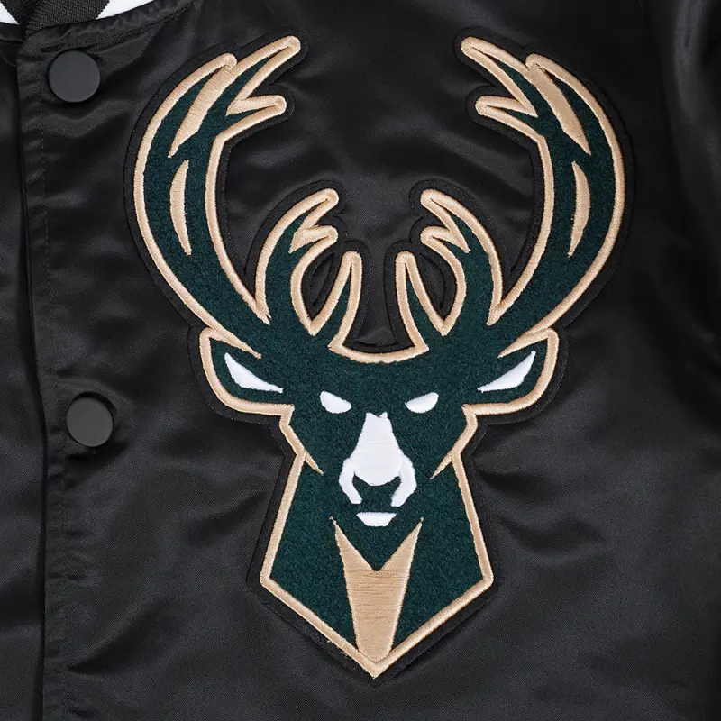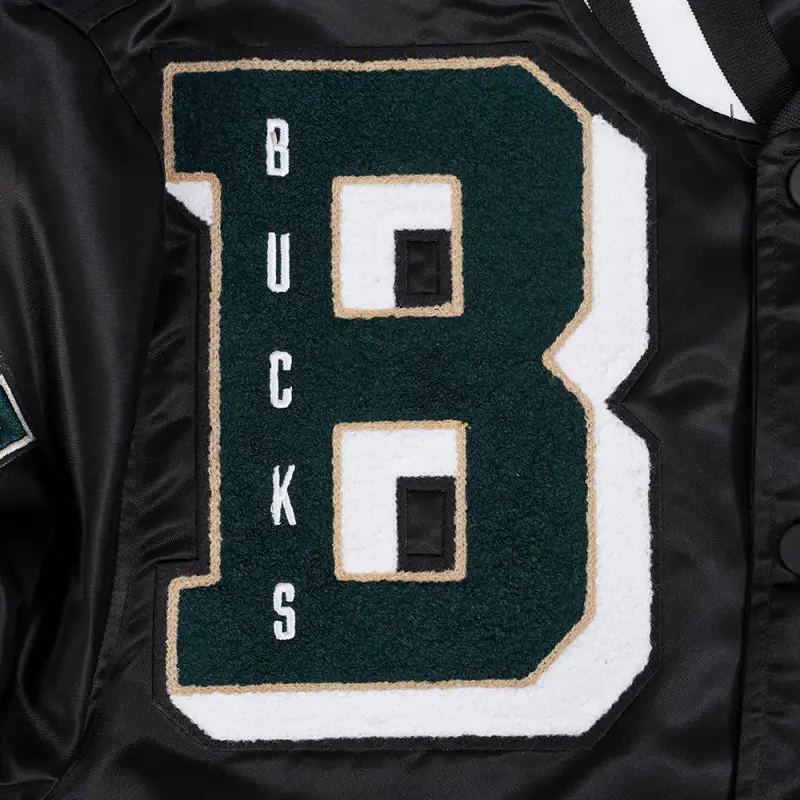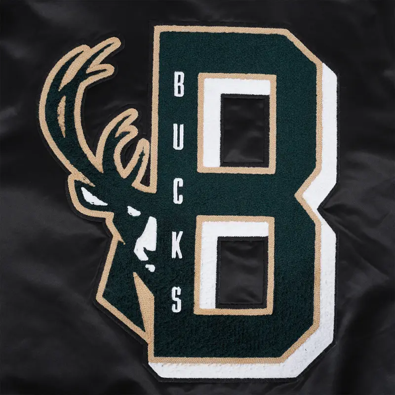 NBA MILWAUKEE BUCKS MASHUP MEN’S RIB SATIN JACKET (BLACK)