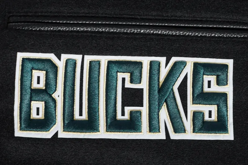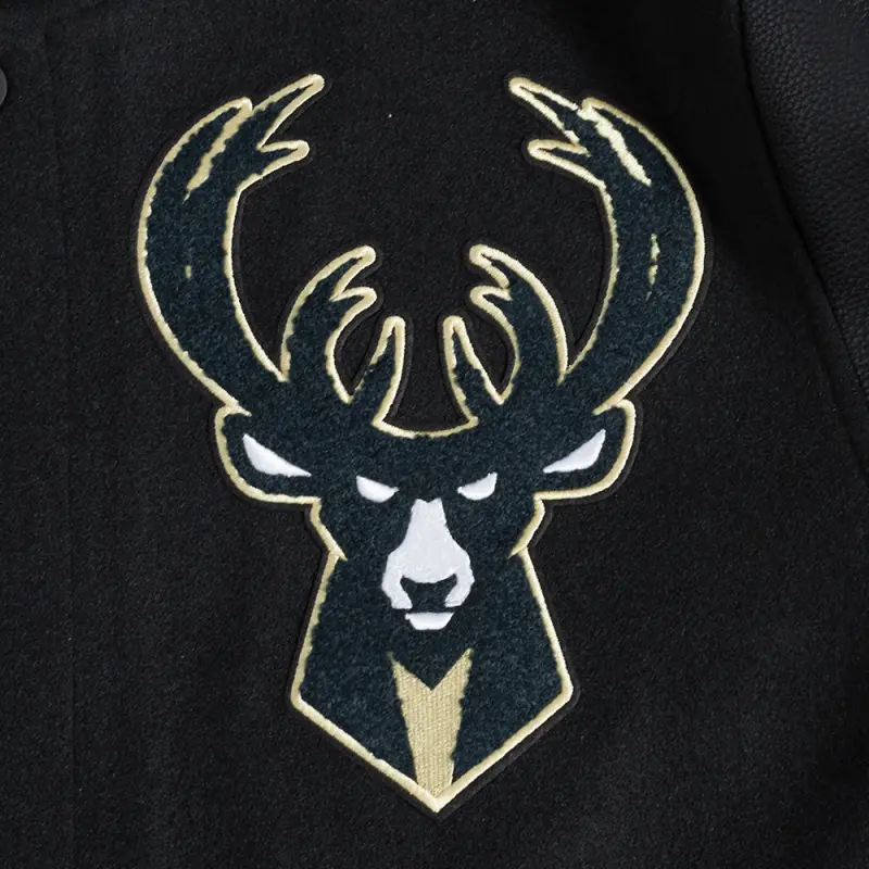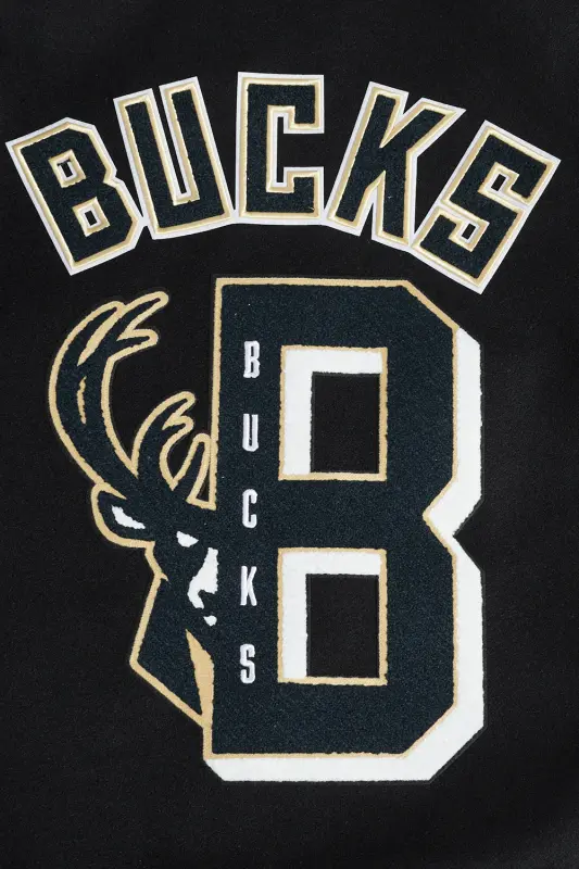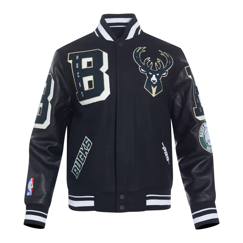 NBA MILWAUKEE BUCKS MASHUP MEN’S RIB WOOL VARSITY JACKET (BLACK)