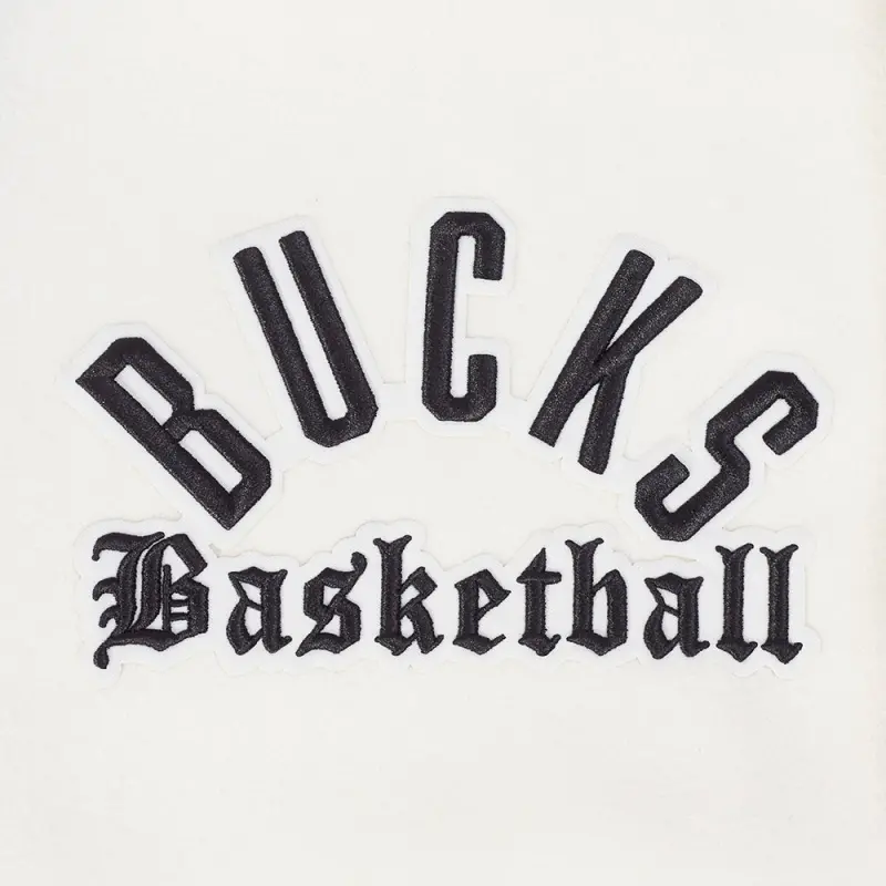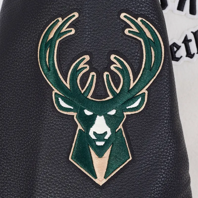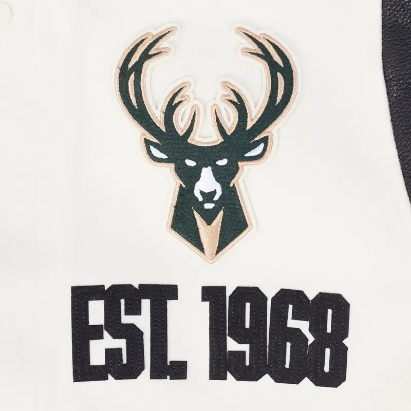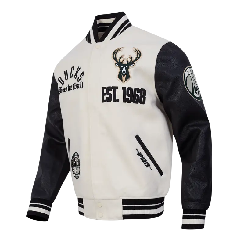 NBA MILWAUKEE BUCKS MODERN ORIGINALS MEN’S RIB WOOL VARSITY JACKET (EGGSHELL\/ BLACK)