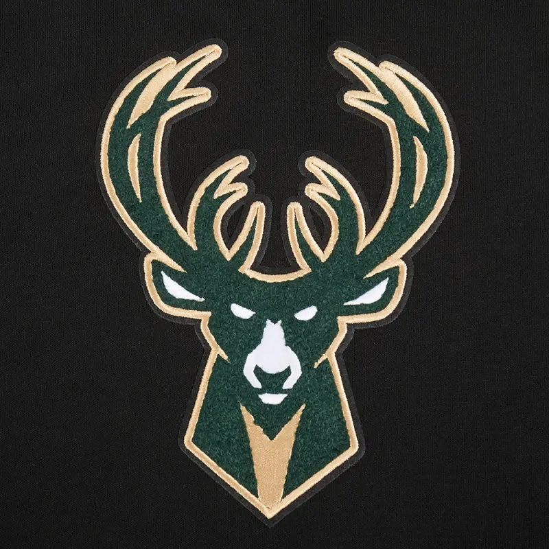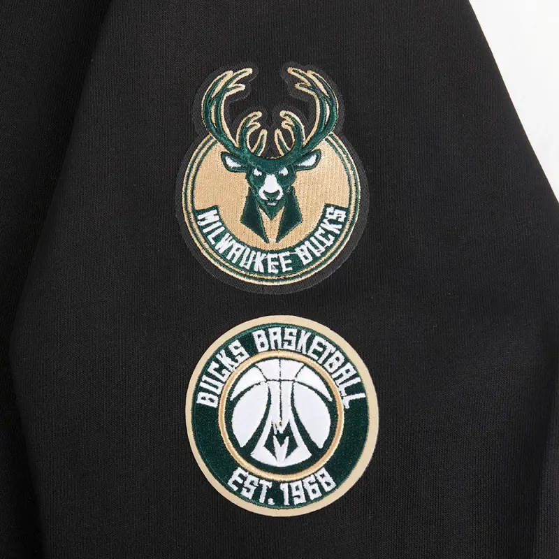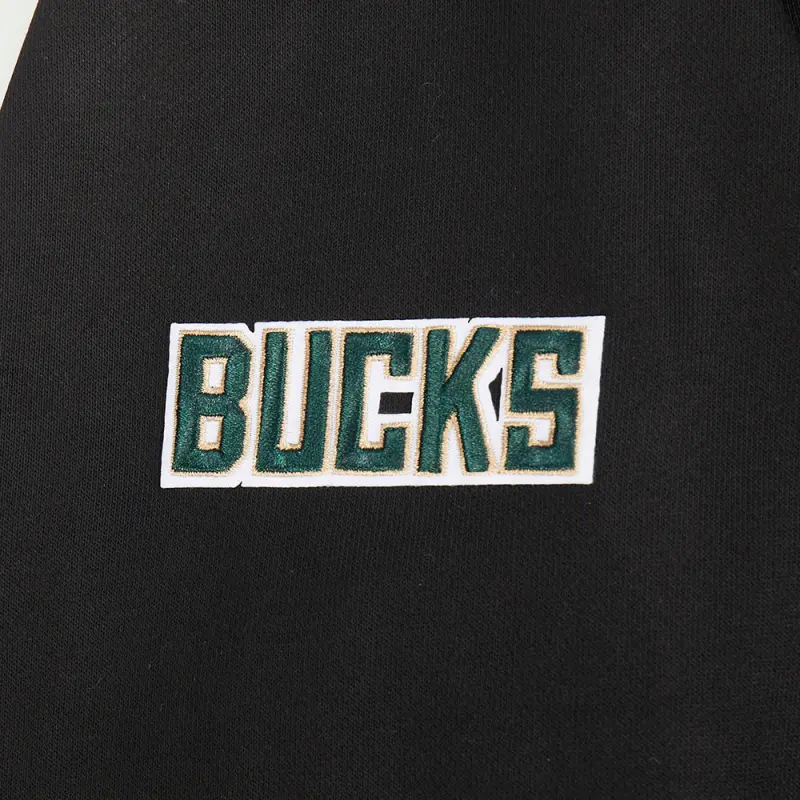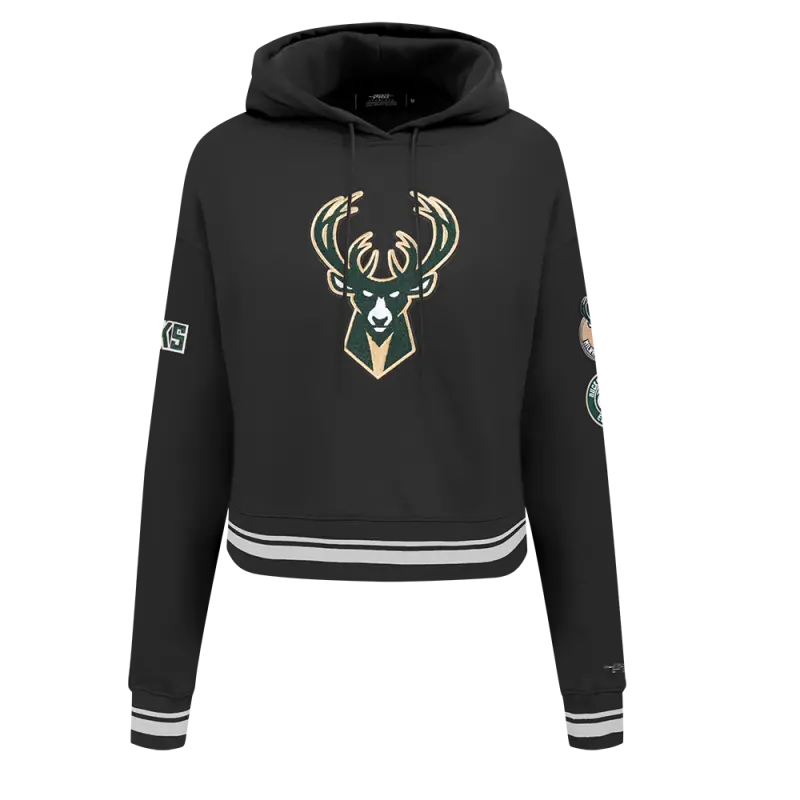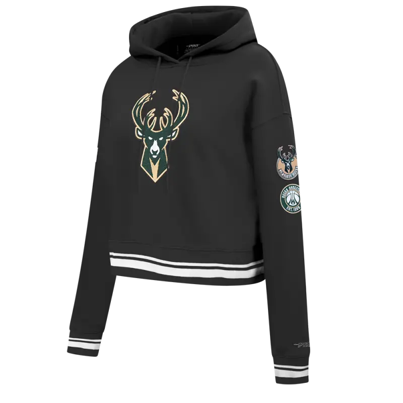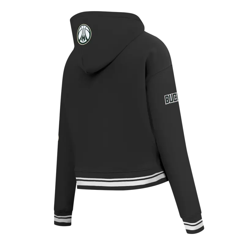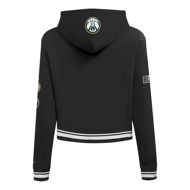 NBA MILWAUKEE BUCKS RETRO CLASSIC WOMEN’S CROPPED PULLOVER HOODIE (BLACK)