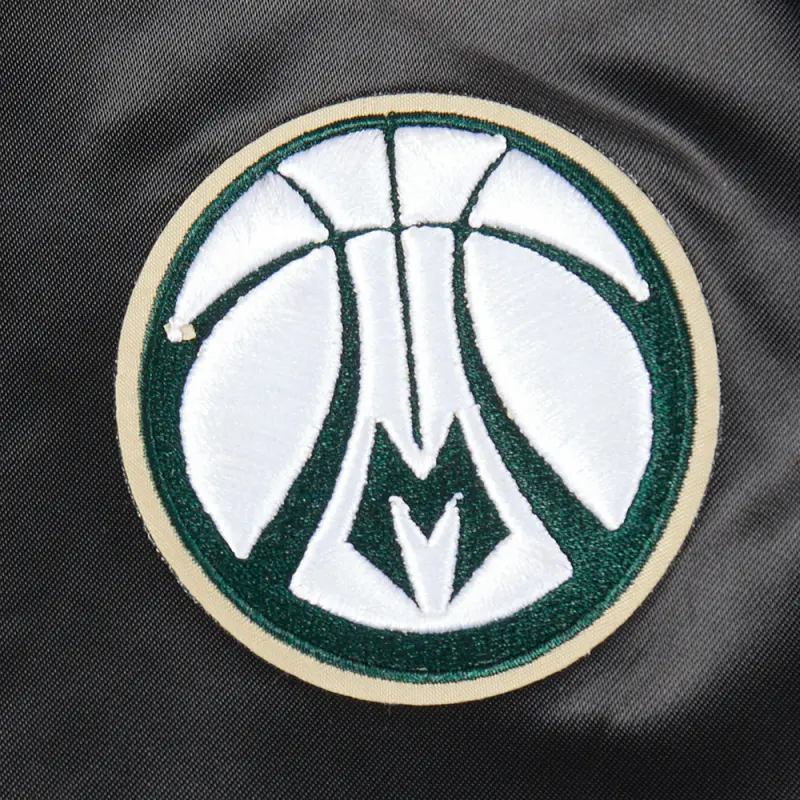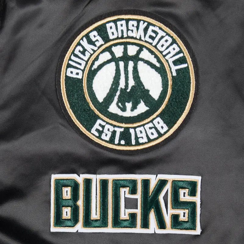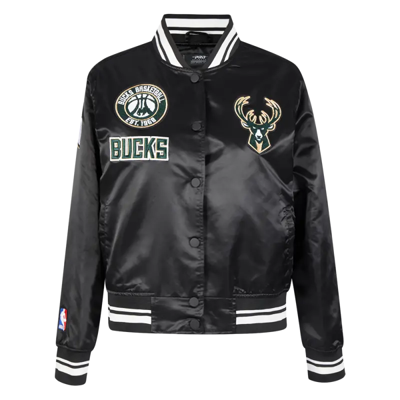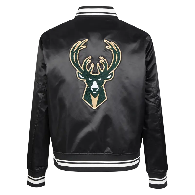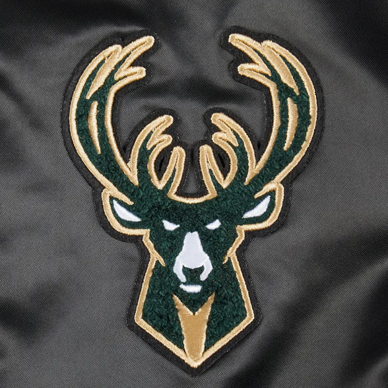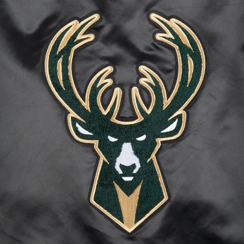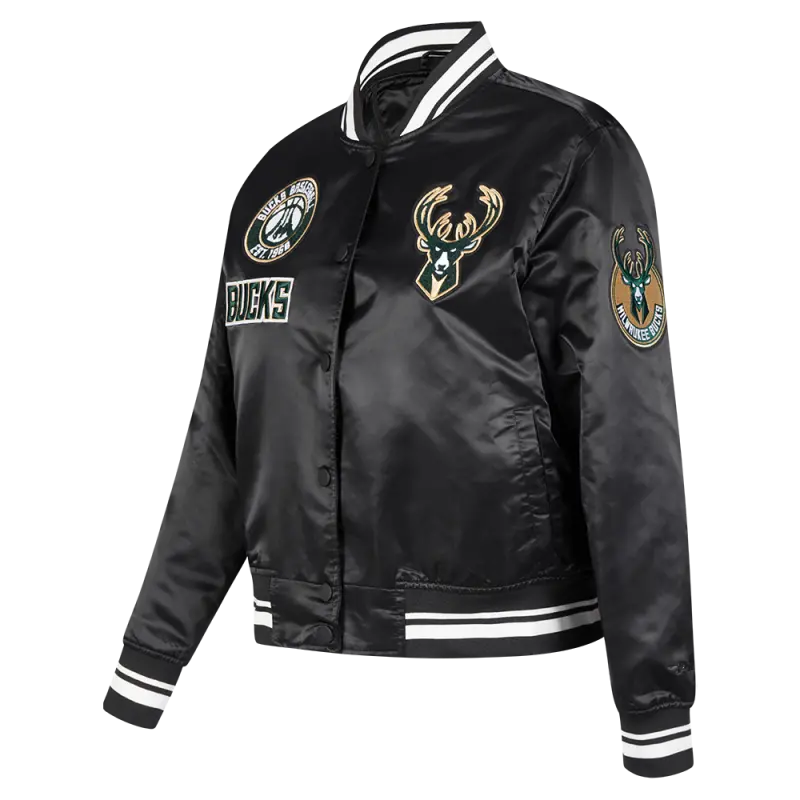 NBA MILWAUKEE BUCKS RETRO CLASSIC WOMEN’S RIB SATIN JACKET (BLACK)