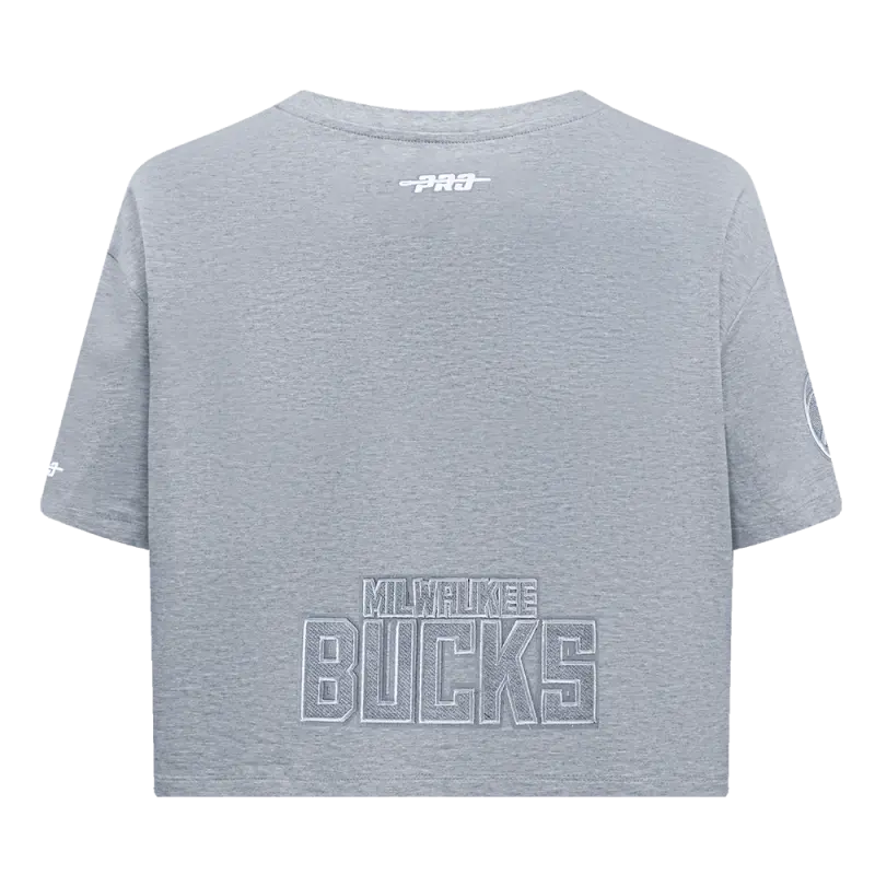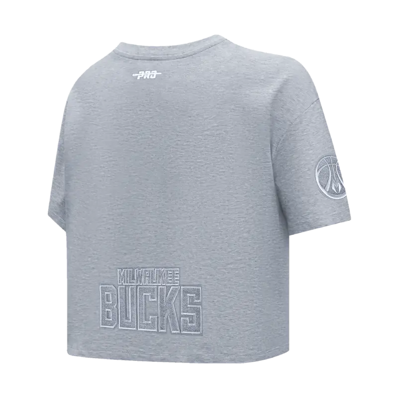 NBA MILWAUKEE BUCKS REVERSE FRENCH TERRY WOMEN’S SINGLE JERSEY BOXY TEE (DARK HEATHER GRAY)