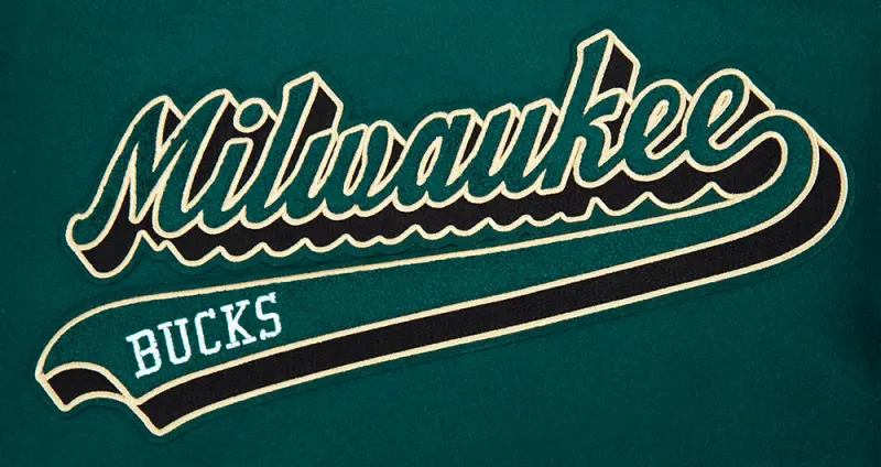 NBA MILWAUKEE BUCKS SCRIPT TAIL MEN’S RIB WOOL VARSITY (FOREST GREEN\/WHITE)