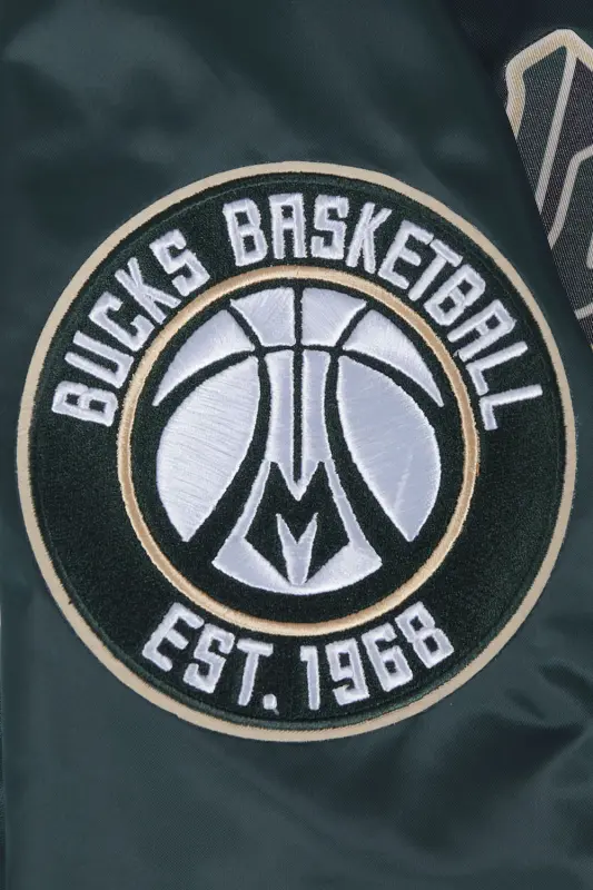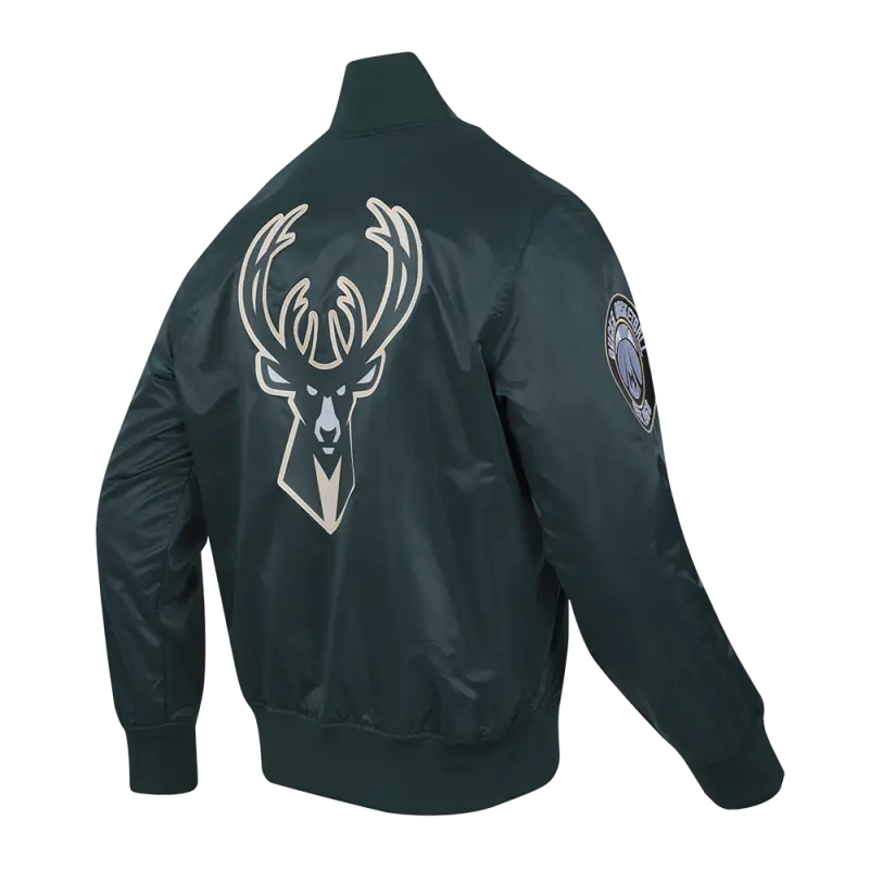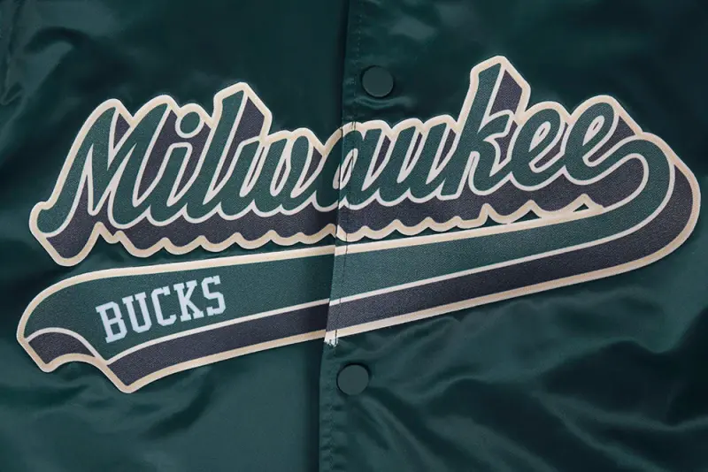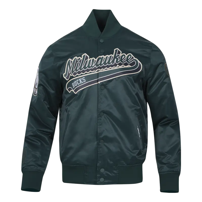 NBA MILWAUKEE BUCKS SCRIPT TAIL MEN’S SATIN JACKET (FOREST GREEN)