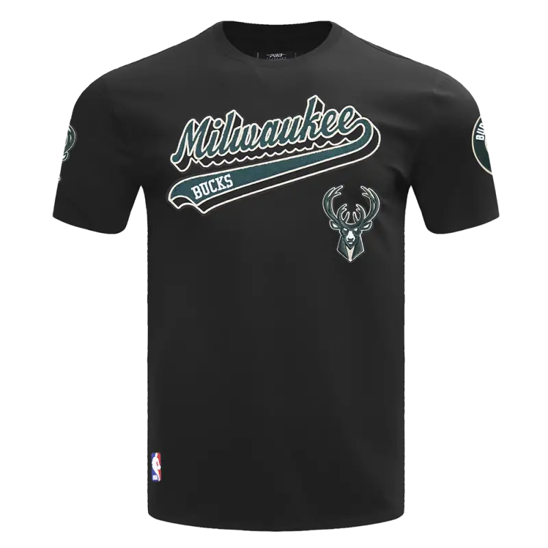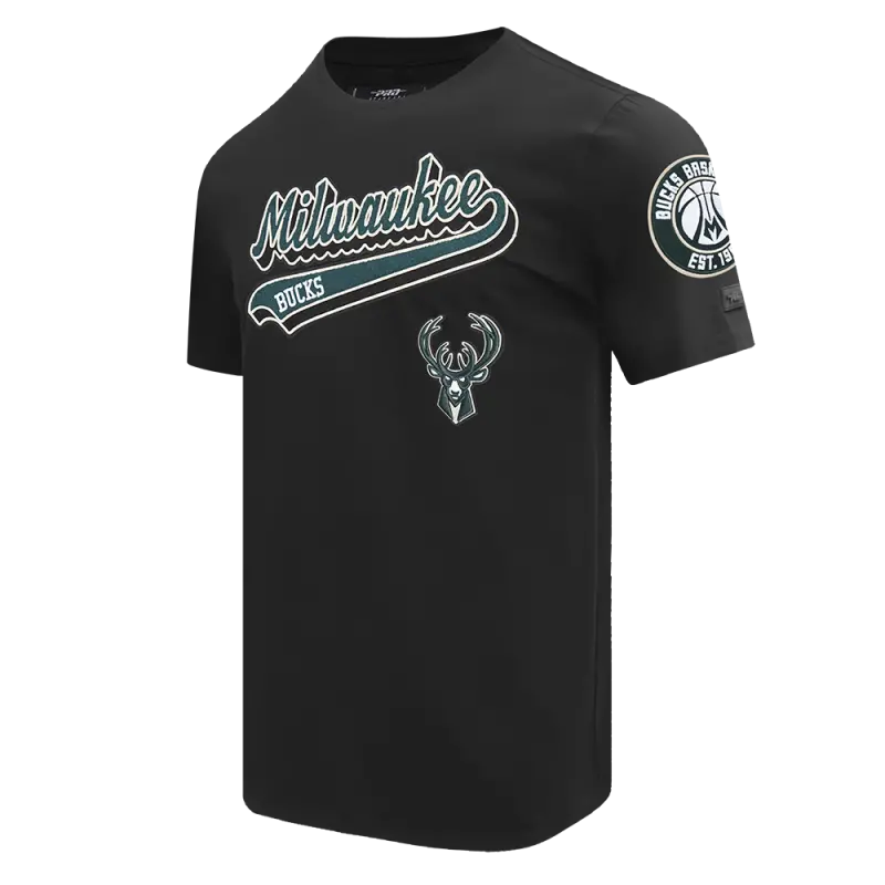 NBA MILWAUKEE BUCKS SCRIPT TAIL MEN’S TEE (BLACK)