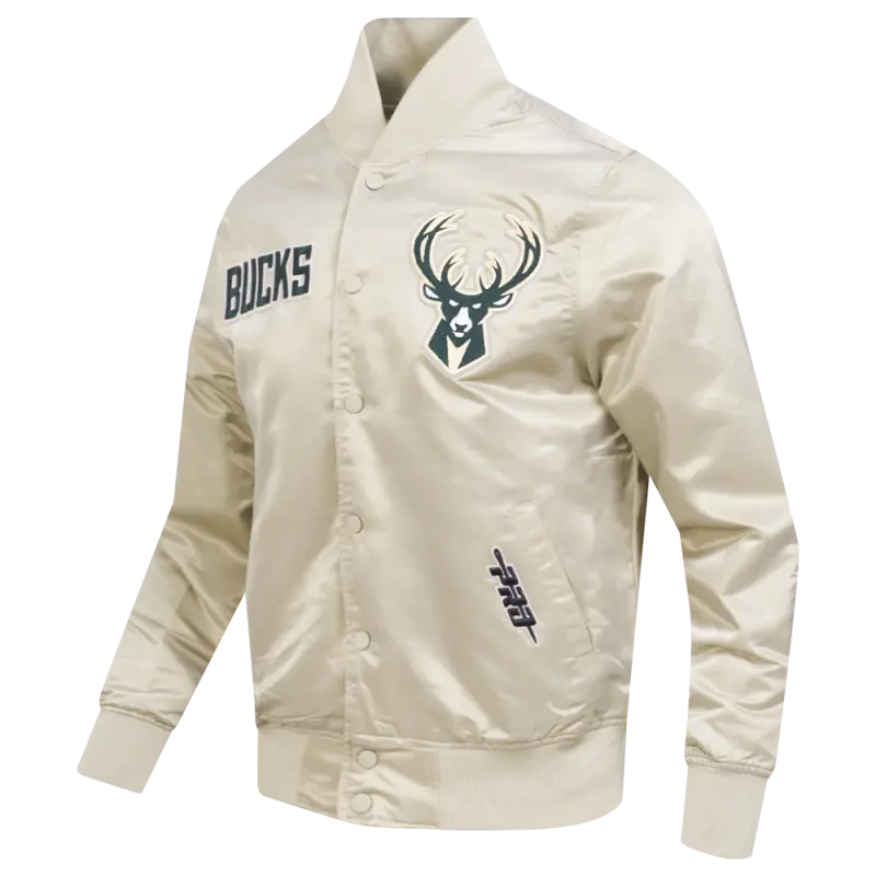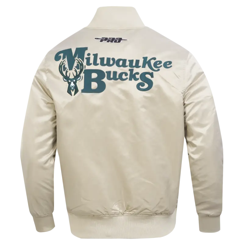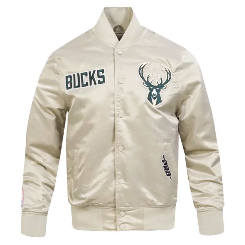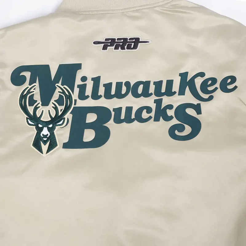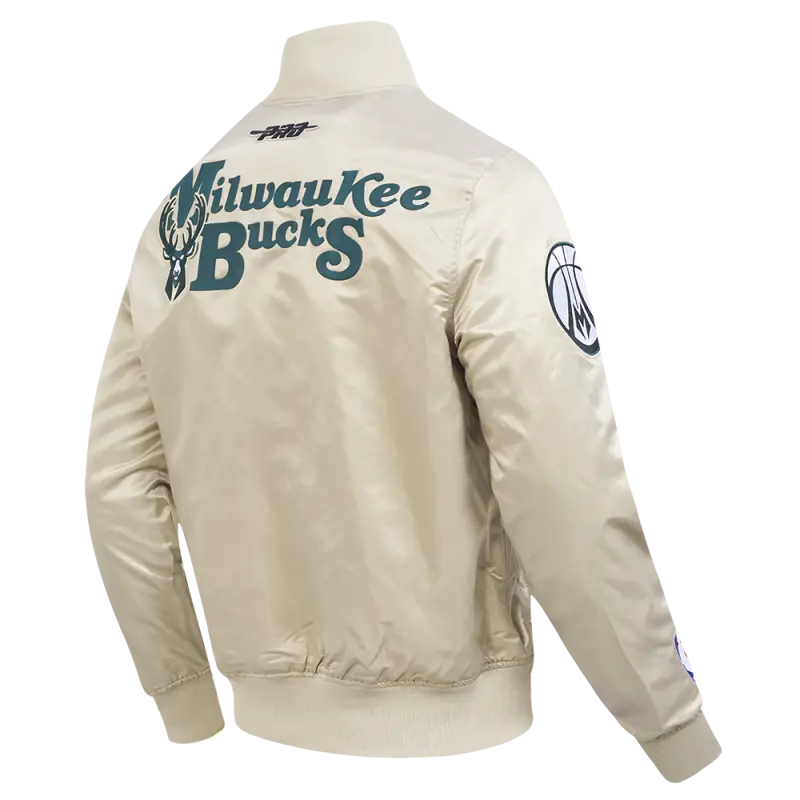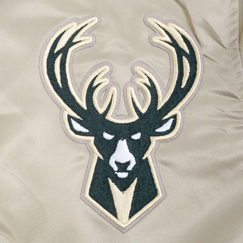 NBA MILWAUKEE BUCKS SOUVENIR MEN’S SATIN JACKET (TAUPE)