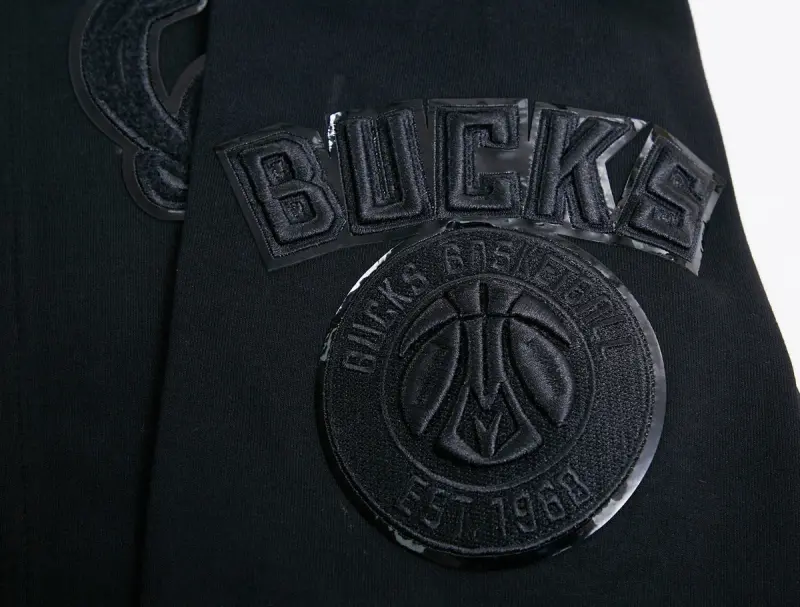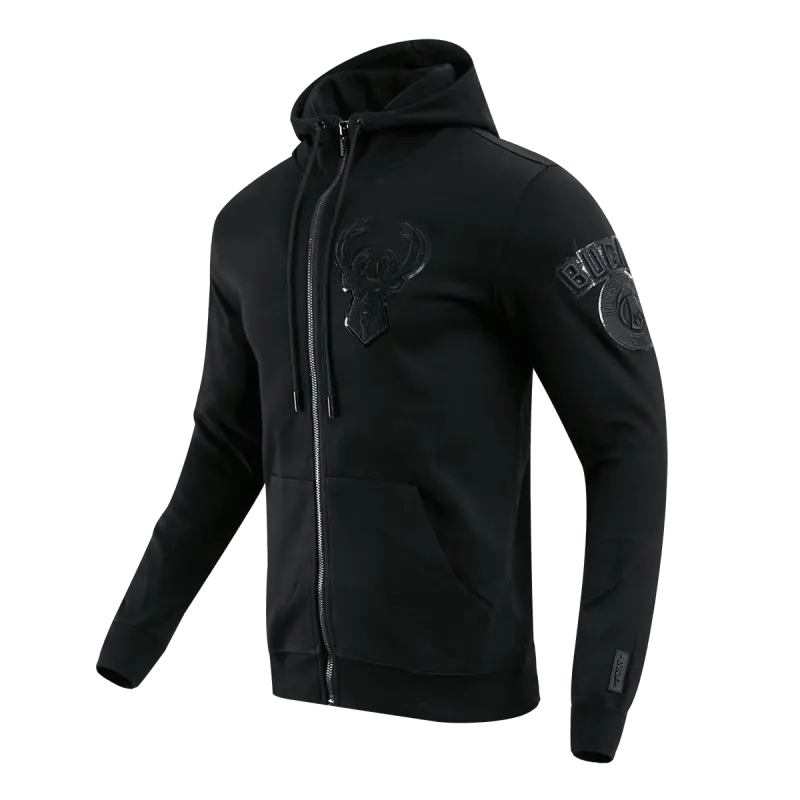 NBA MILWAUKEE BUCKS TRIPLE BLACK MEN’S FULL ZIP PULLOVER HOODIE (BLACK)