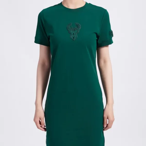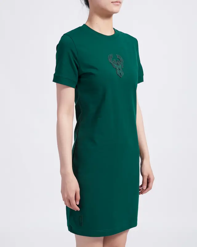 NBA MILWAUKEE BUCKS TRIPLE TONAL BODYCON DRESS (FOREST GREEN)