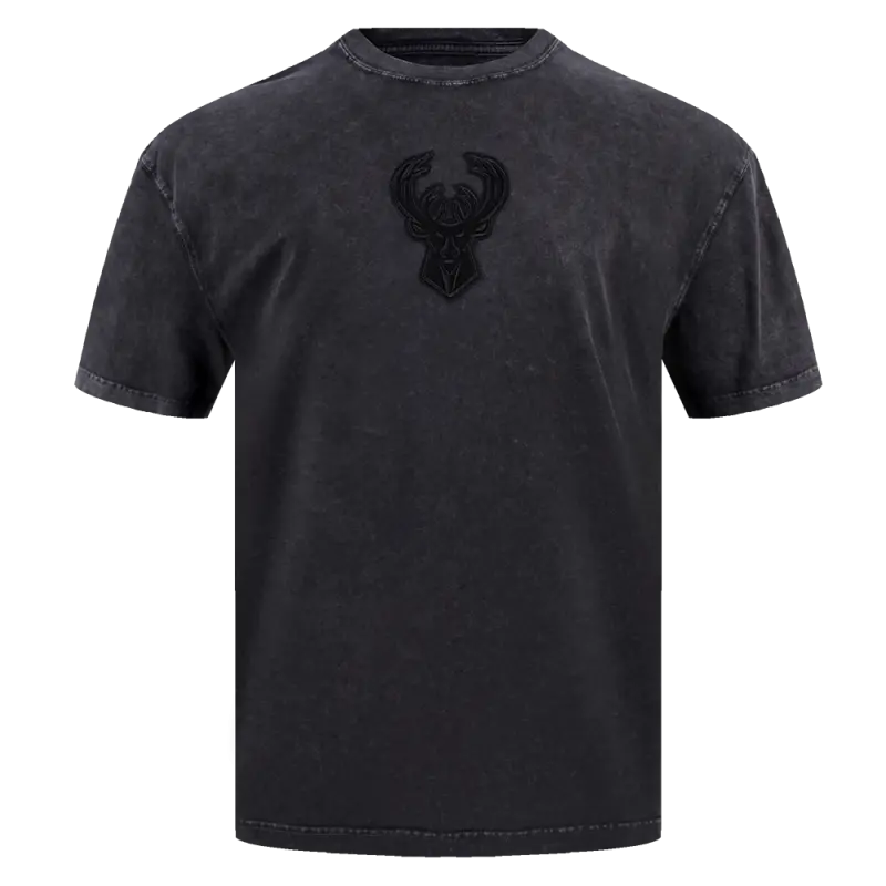 NBA MILWAUKEE BUCKS WASHED CLASSIC MEN’S ENZYME WASH CJ DROP SHOULDER TEE (WASHED BLACK)