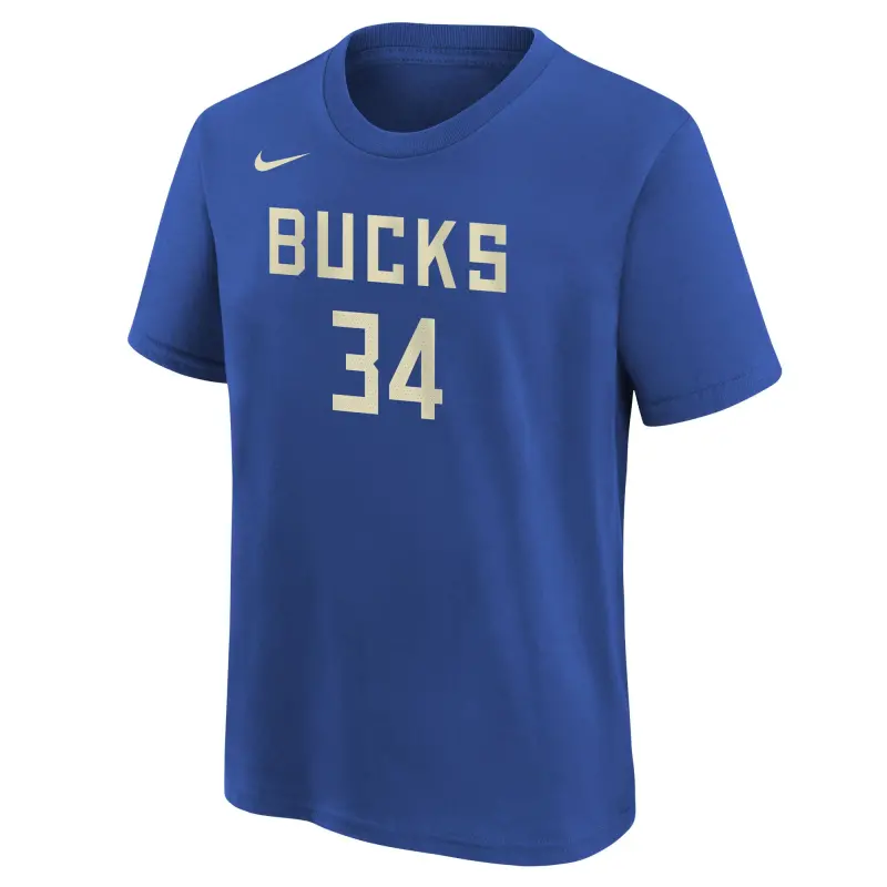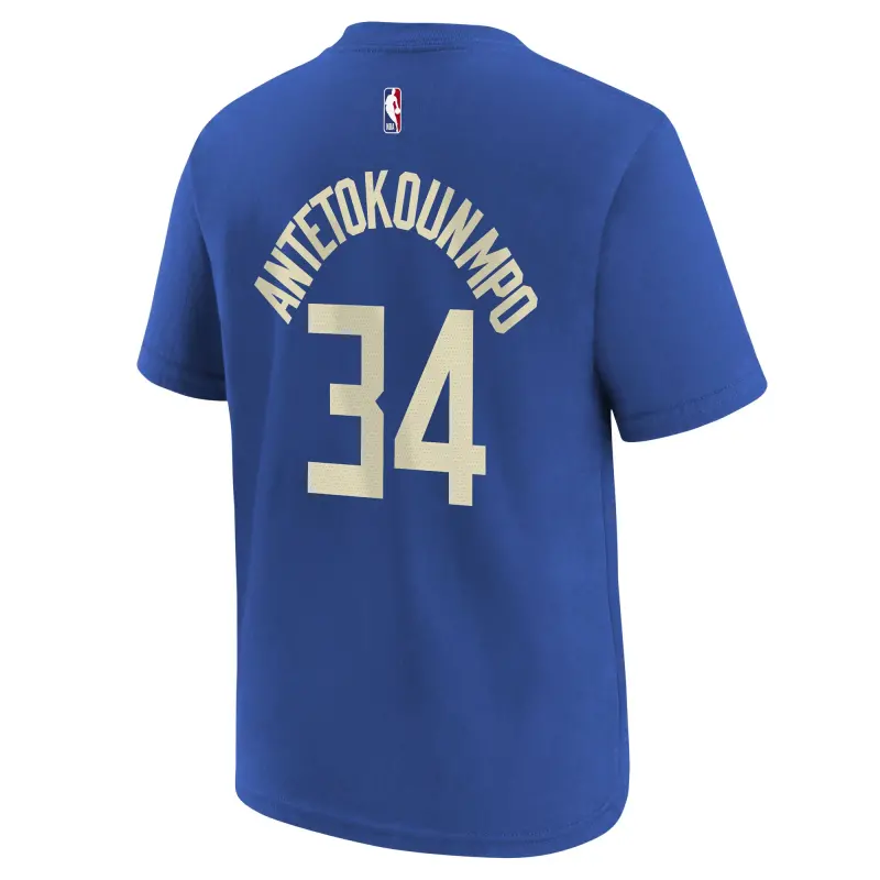Home / Shop / Milwaukee Bucks / Youth Milwaukee Bucks Giannis Antetokounmpo Nike Royal 2024/25 City Edition Name & Number T-Shirt