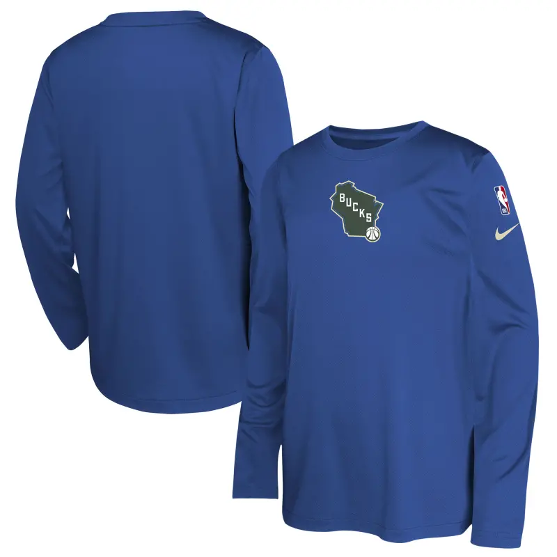 Home / Shop / Milwaukee Bucks / Youth Milwaukee Bucks Nike Royal 2024/25 City Edition Pregame Performance Long Sleeve Shooting T-Shirt